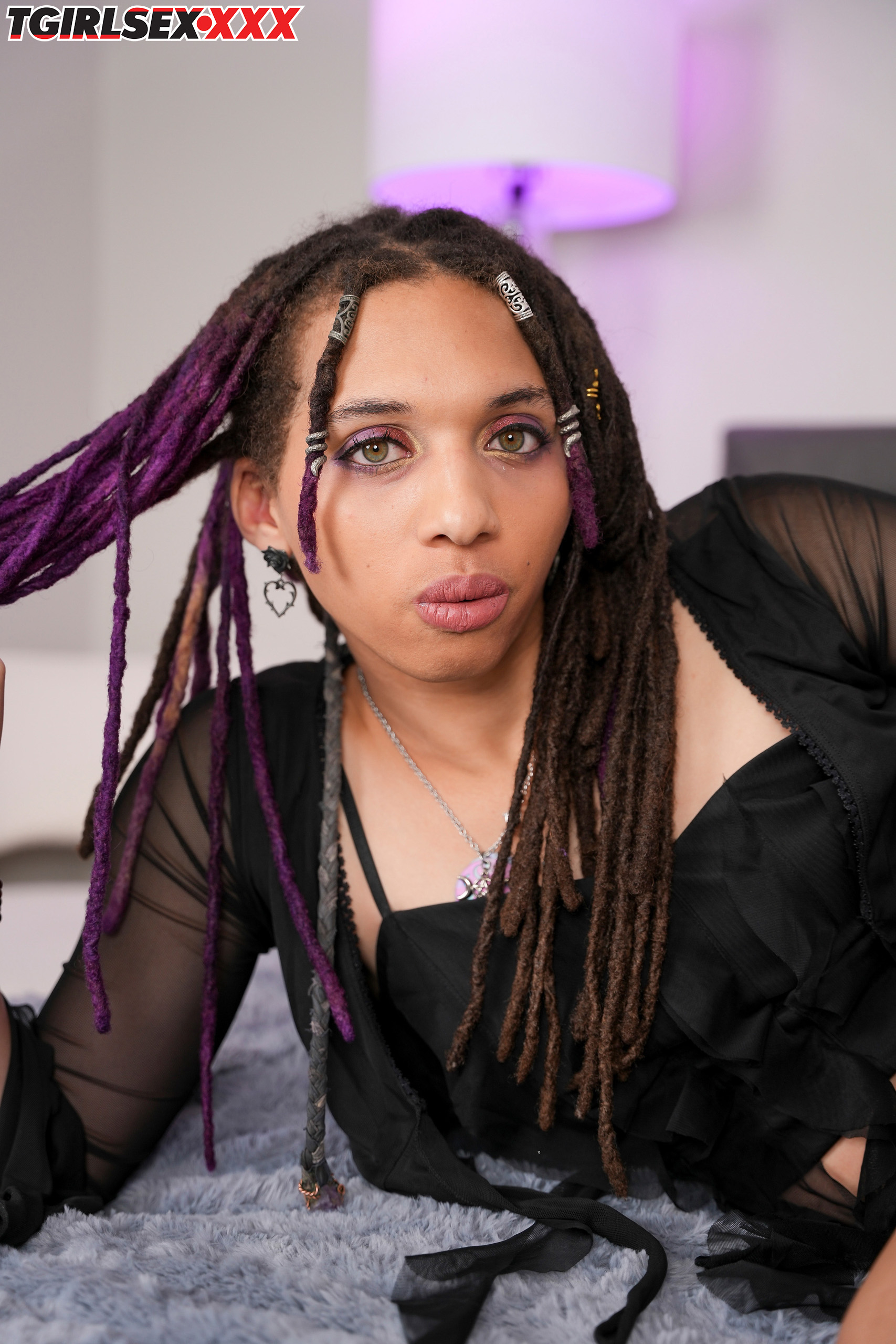 After getting rave reviews for her scene with Vic earlier this year, Aelin was ready to come back in and prove that she can do it two times in a row. And her cohort for this scene, was PF Bhangs who just loves to to get his hands, his tongue and his big cock all over a hot trans girl, or all inside a hot trans girl. Some lovely genuine foreplay starts this scene, and Aelin looks stunning with her braided hair, her natural good looks and great aesthetics, her body is smooth and nice curves, and when PF pulls down her panties, he's surprised to see her ready plugged - for easy entrance, and then hard pounding. After some mutual oral, in which Aelin shows how great she can suck on a cock, PF delivers his cock right where it was aiming; deep inside Aelin who writhes and moans with pleasure. A hot Radius Dark scene.